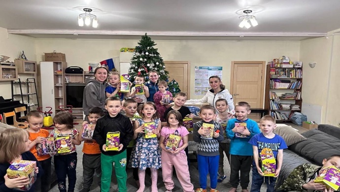 Представления с Дедом Морозом, сладкие подарки, развивающие игры: «Единая Россия» дарит новогоднее чудо детям по всей стране 2026, Представители партии передают поздравления и подарки семьям участников СВО, многодетным, юным пациентам медицинских учреждений Московские единороссы из Троицкого и Новомосковского округов вместе с футболистками Женской футбольной команды Троицка «Новые Ватутинки» приехали в детский социально-реабилитационный центр «Покров».